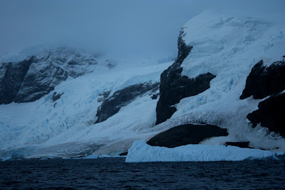 After a lengthy pause in my personal narrative, during which I climbed above the bridge to the observation deck, and swayed back and forth while looking for the pelagic ornithological specialities of the Drake passage, we are now some thirty hours into our journey. The storm still threatens from the west, and it is dark once more. There is no view of the horizon from my porthole to keep one grounded in the midst of the inexorable swaying and rocking of the stateroom. The Alexey Maryshev is some two hundred and sixteen feet long, built of steel in Finland. We've just enjoyed a gourmet three-course meal of brie-en-croute, fresh mixed salad, and breaded boneless lamb over couscous, served with copious measures of fine Argentine tinto, making it hard to imagine the deprivations suffered by Shackleton's men in the same waters. The ship is rocking more than ever, but the scopalomine patch seems to be doing the trick, and at the moment I fear hangover more than seasickness. To each side of the ship, hanging in the davits, are spacious, fully enclosed, virtually submersible plastic lifeboats, looking like orange versions of the cartoon yellow submarine. They have curved roofs and locking hatches, so that were we to be shipwrecked we could bob about in them on almost any seas, making satellite phone calls and eating the high-calorie rations packed within. Yesterday afternoon, during the fire drill, we made great sport of clambering in and out of them in our life-preservers, laughing at the unlikelihood of their ever seeing use.